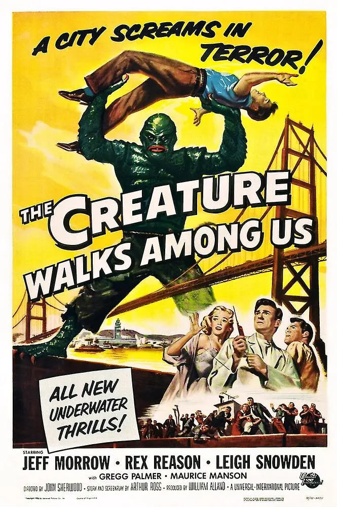 在这第三部鳃人电影(前两部分别是《黑湖妖谭》、《造物复仇》),那生物被抓住了,一个富有而疯狂的科学家成功地被它改变为空气呼吸的生物,可这让生物非常生气,后果很严重,它逃脱了,四处杀人放火。
